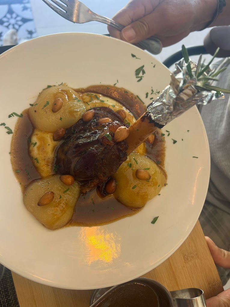 65DH2 Œufs au khlii, harcha msemen, batbout, amlou, miel, yaourt, boisson chaude, jus d'orange pressé ou de carotte.